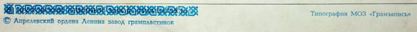 - Pressed By – Апрелевский Завод Грампластинок