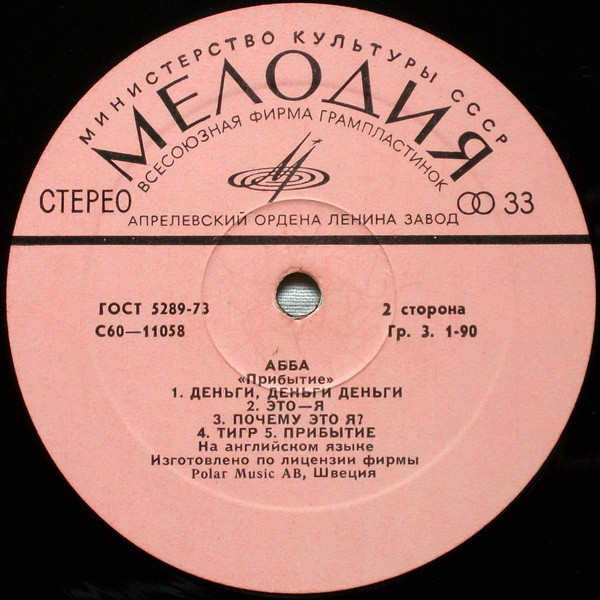 Изготовлено по лицензии фирмы POLAR MUSIC INTERNATIONAL AB, Швеция