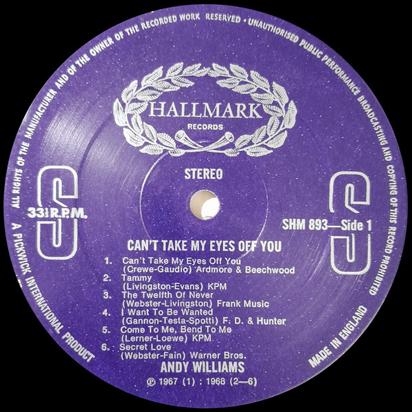 Andy Williams - Can't Take My Eyes Off You