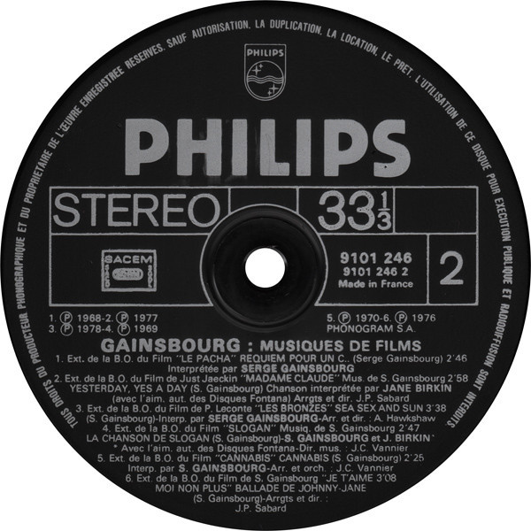 Written-By – J.P. Sabard*, S. Gainsbourg*