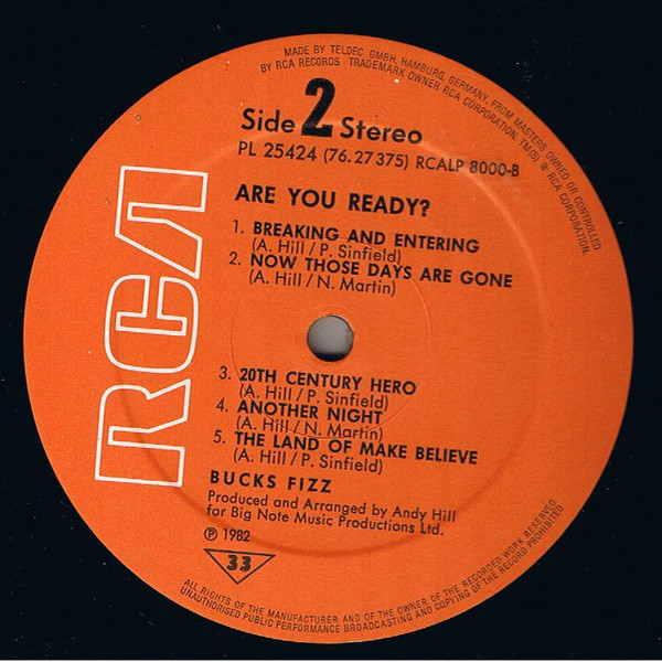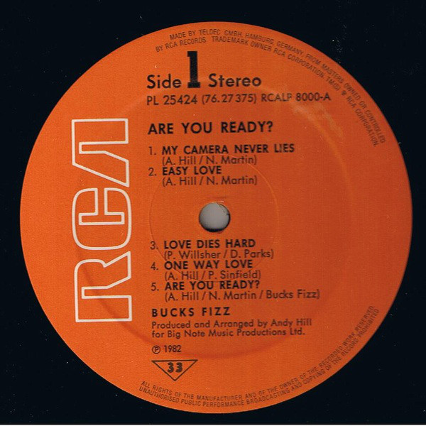 Sleeve 1982 RCA Ltd. Record Division. 1 Bedford Avenue, London WC1.
