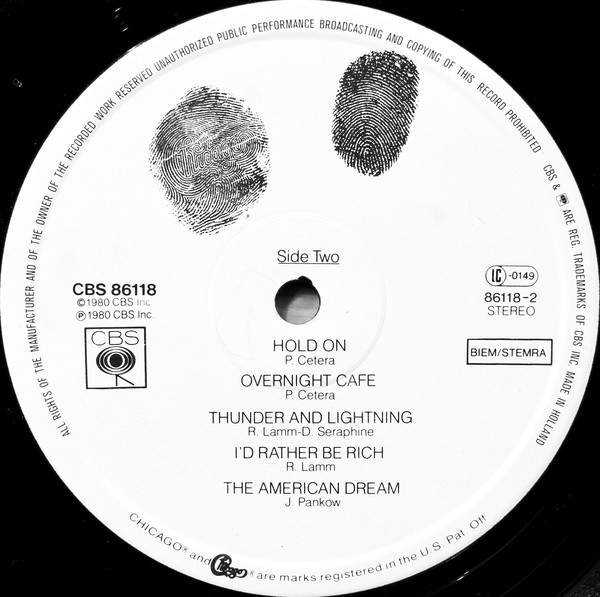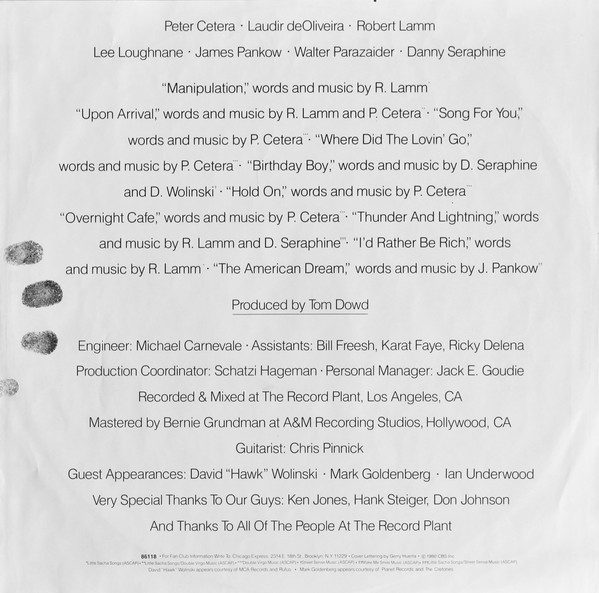- Written-By – P. Cetera* (tracks: A2 to A4, B1, B2), R. Lamm* (tracks: A1, A2, B3, B4)
