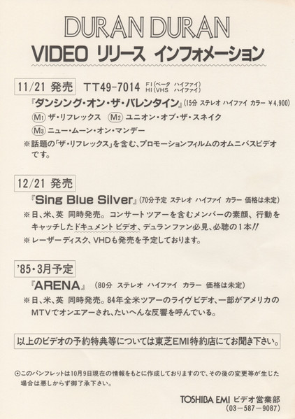 - Performer [Duran Duran are] – Andy Taylor, John Taylor, Nick Rhodes, Roger Taylor (2), Simon Le Bon