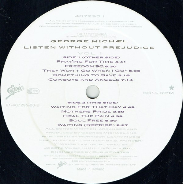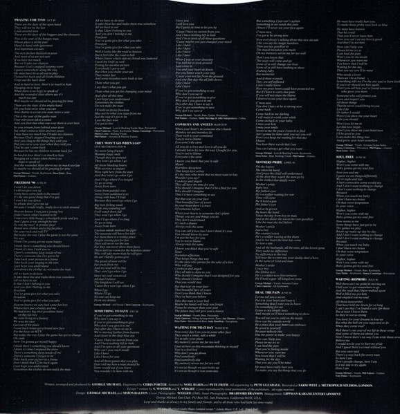 - Written-By – George Michael (tracks: A1, A2, A4 to B5), S. Wonder* (tracks: A3), Y. Wright* (tracks: A3)