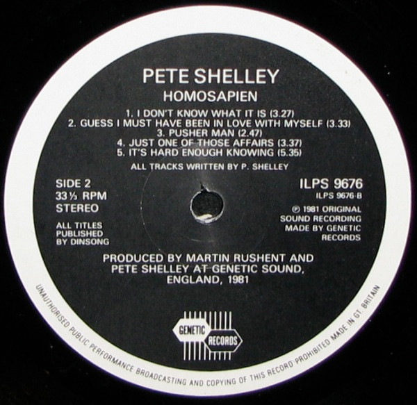 - Engineer – Martin Rushent, Pete Shelley