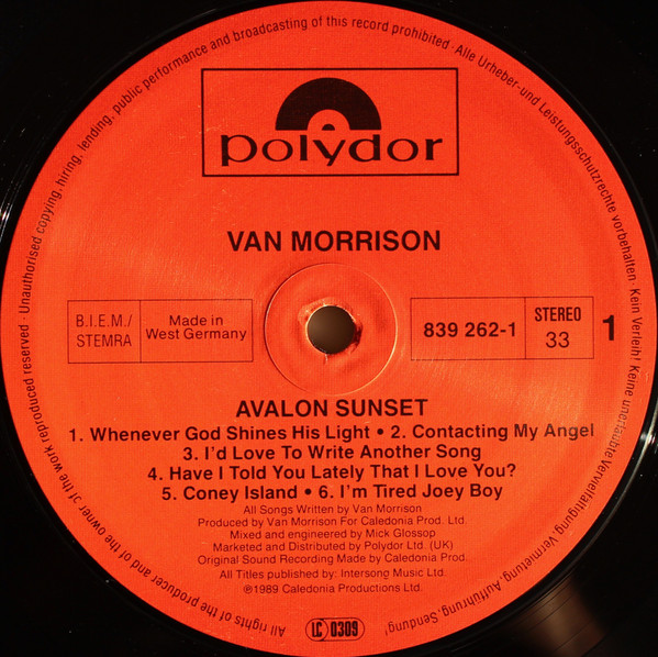 Similar version with 'Made in Holland' on labels here: Van Morrison - Avalon Sunset.