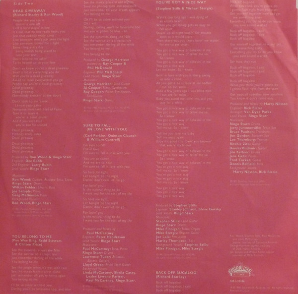 - Producer [Produced By] – George Harrison (tracks: A2, B2), Harry Nilsson (tracks: A3, A5, B5), Paul McCartney (tracks: A1, A4, B3), Ringo Starr (tracks: B1), Ron Wood (tracks: B1), Stephen Stills (tracks: B4)