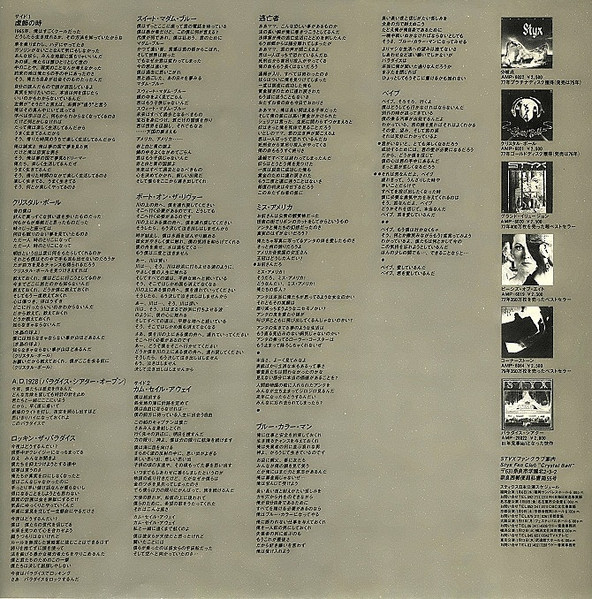 - Written-By – Dennis DeYoung (треков: A1, A3 to A5, B1, B5), James Young (3) (треков: A4, B3), Tommy Shaw (треков: A1, A2, A4, A6, B2, B4)