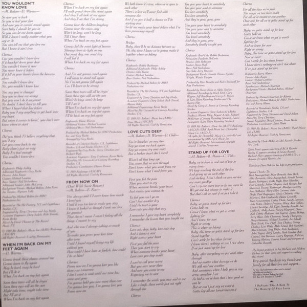 - Producer – Michael Bolton (tracks: A2, B1, B2, B3, B5), Michael Omartian (tracks: A3, A4, B5), Peter Bunetta (tracks: A1, B4), Rick Chudacoff (tracks: A1, B4)