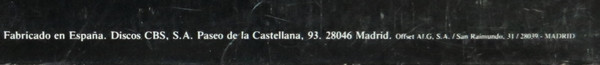 - Manufactured By – Discos CBS, S.A., Madrid