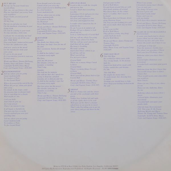 Written-By – D. DeYoung*, J. Young*, T. Shaw*