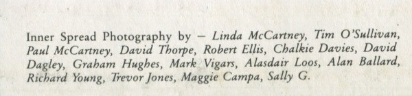 - Producer – George Martin (tracks: A4, B5, B6, D1, D4), Paul McCartney (tracks: A1 to A3, A5 to B4, C2 to C4, D2, D3, D5), Phil Ramone (tracks: C5)