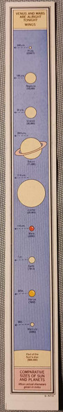 A seconds sticker in rectangle and shows our galaxy, comparative sizes of sun and planets with the time it takes to make their circle around the sun and their size.
