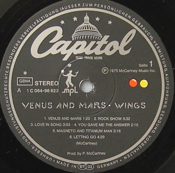 Labelversion with MPL logo, for version without MPL logo on labels see Wings (2) - Venus And Mars