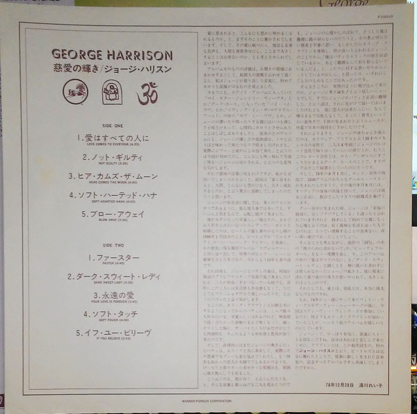 Issued with OBI, stating ¥2,500 and showing other Dark Horse-WB/Pioneer albums on the back, plus the Rutles album!