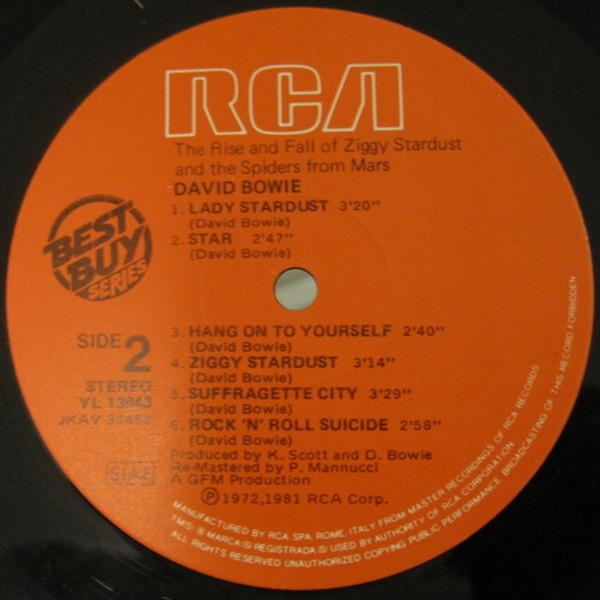 Manufactured by RCA SPA, Rome, Italy from Master Recordings of RCA Records.