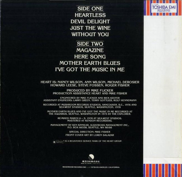 - Lyrics By – Ann Wilson (tracks: A1 to A3, B1, B2), Nancy Wilson (2) (tracks: A1 to A3, B1, B2)