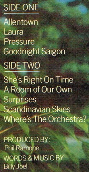 - Vocals, Piano, Synthesizer, Organ [Hammond], Melodica, Words By, Music By – Billy Joel