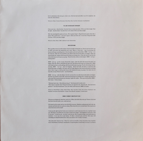 - Drums – Alan Mansfield, Dony Wynn, Robert Palmer