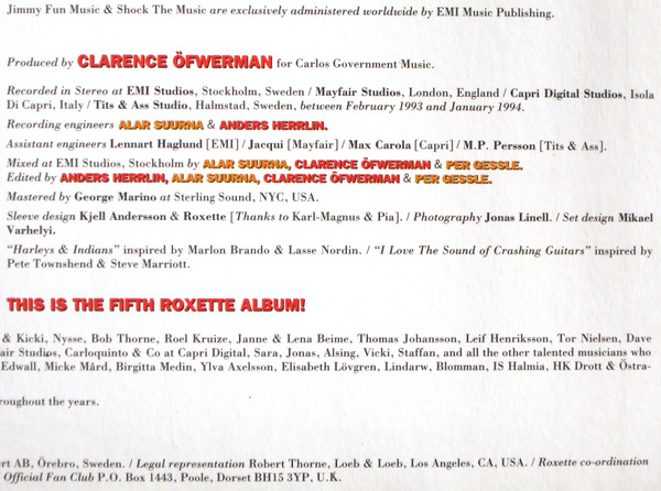 - Mixed By – Alar Suurna, Clarence Öfwerman, Per Gessle
