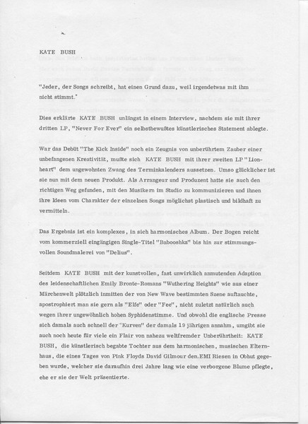 - Published By – Kate Bush Music Ltd.