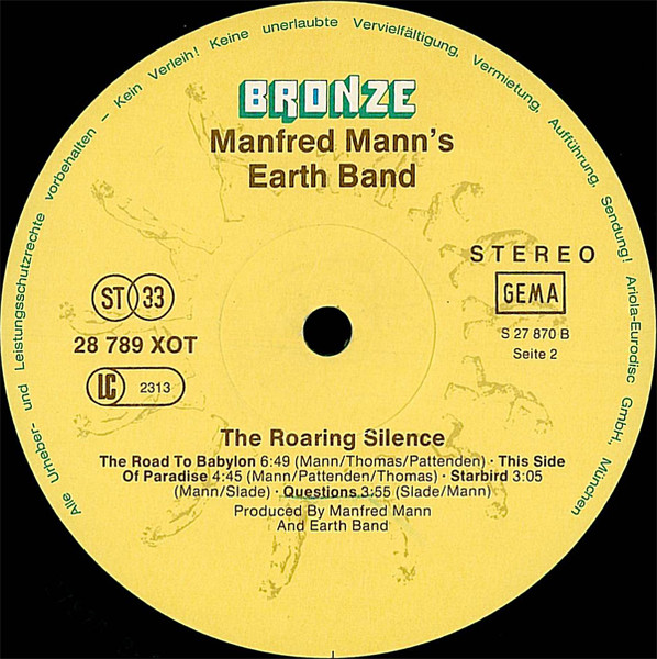 Reissue of The Roaring Silence with new catalog number. Label rim text positioned in the upper half of the center label. Issued in this form between late 1977 and 1979.