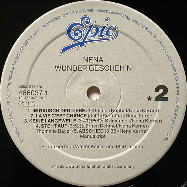 - Phonographic Copyright ℗ – CBS Schallplatten GmbH