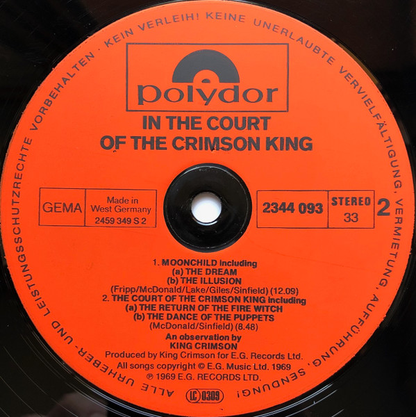 | B2 | The Court Of The Crimson King (Including (A) The Return Of The Fire Witch; (B) The Dance Of The Puppets) | 8:48 |