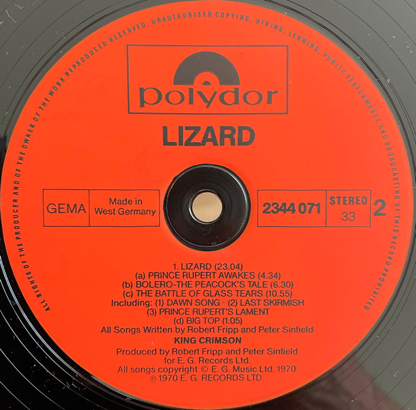 - Written-By, Producer – Peter Sinfield, Robert Fripp