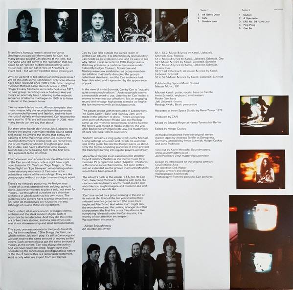 - Music By, Lyrics By – Czukay* (tracks: B2), Schmidt*, Liebzeit*, Karoli*, Reebop* (tracks: A1-A2), Rosko Gee (tracks: A1-A3,B2)