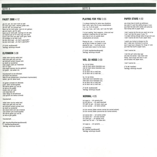 Original german LP release incl. a black & white lyric insert with track list and credits