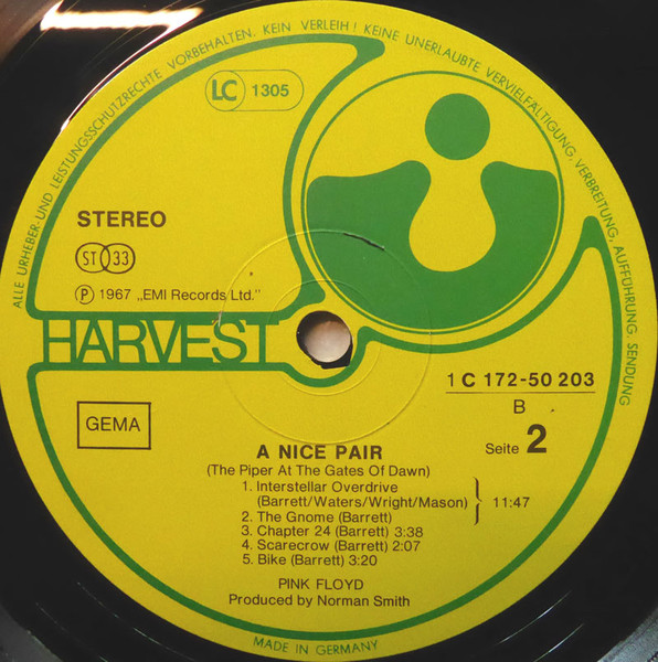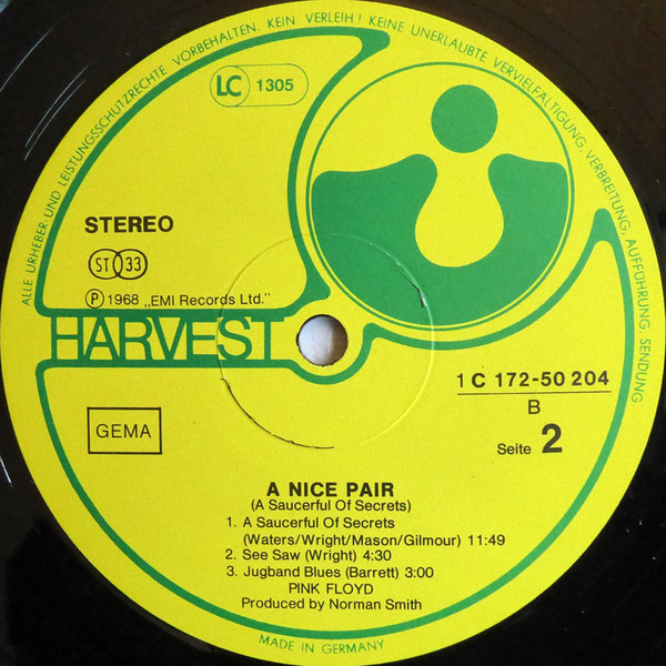 Different labels compared to A Nice Pair with same cat. no.: Rim text half around label in German language and "Made in Germany".