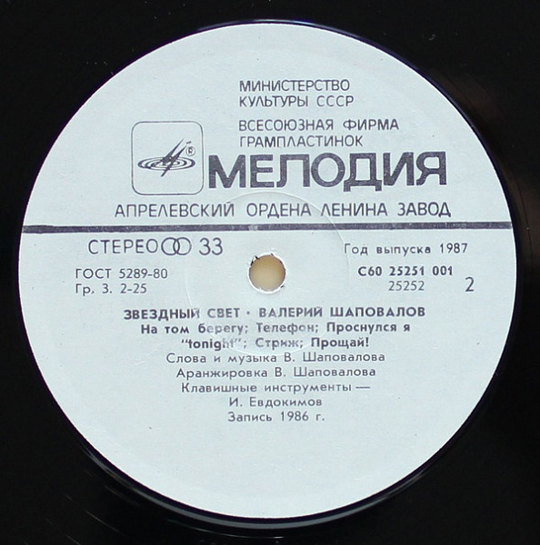 Всесоюзная студия грамзаписи. Запись 1986 г.