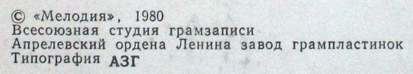 - Pressed By – Апрелевский Завод Грампластинок