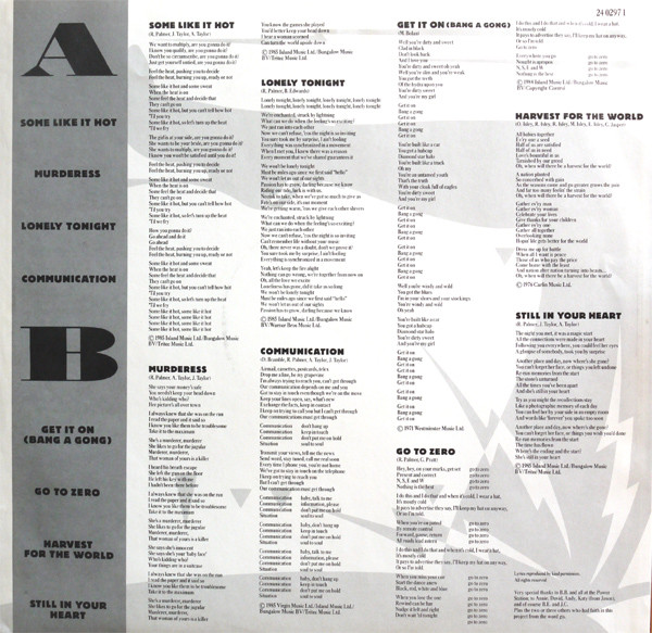 Written-By – A. Taylor*, J. Taylor*, R. Palmer* |