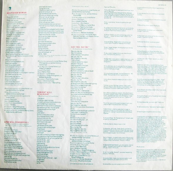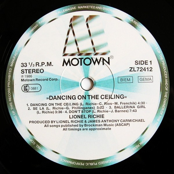 Except "Ballerina Girl," "Dancing on the Ceiling" and "Love Will Conquer All," Overdubs Recorded at Motown/Hitsville USA. Recording Studio 7317 Romaine Street Hollywood, California 90046