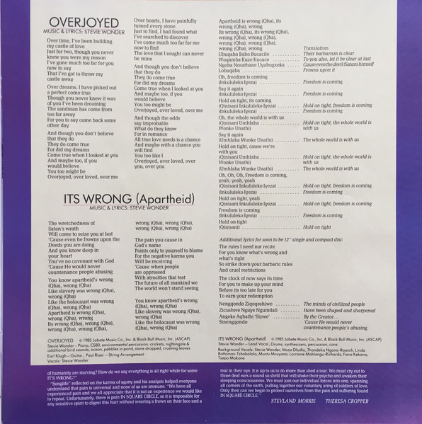 - Liner Notes – Stevland Morris, Theresa Cropper