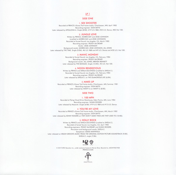 This Compilation ℗ & © 2019 NPG Records, Inc., under exclusive license to Warner Bros. Records Inc.