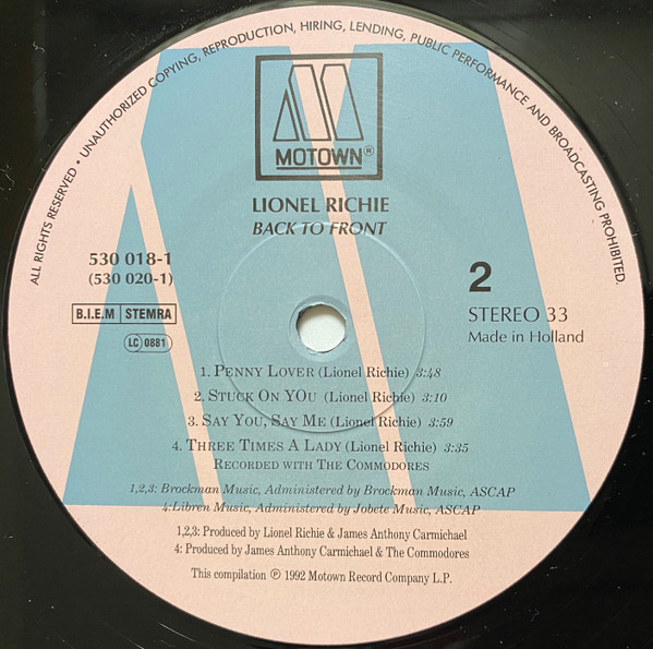 - Arranged By [Vocal] – Lionel Richie (tracks: to B1, B3 to C1, D1 to D2)