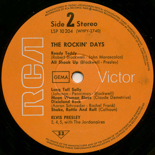 - Accompanied By [With] – The Jordanaires (tracks: A2, A5, A6, B2, B4, B5)