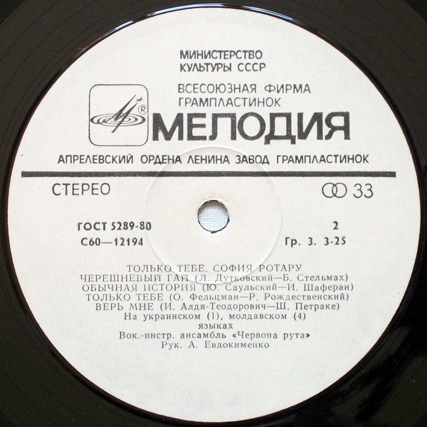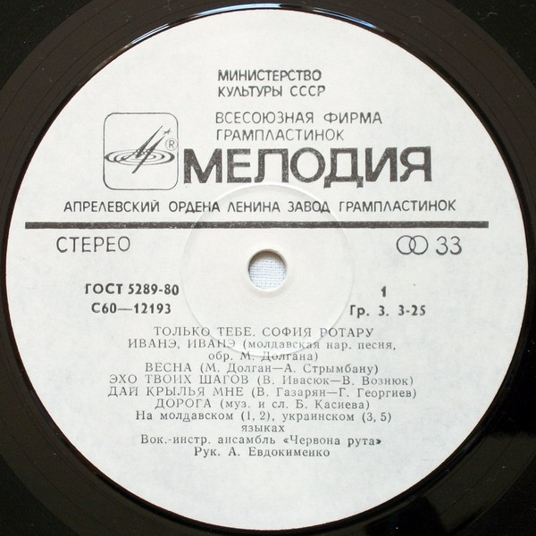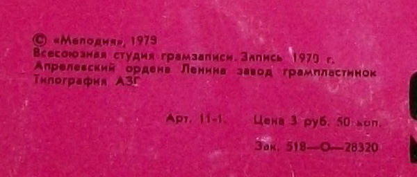 Всесоюзная студия грамзаписи. Запись 1979 г.