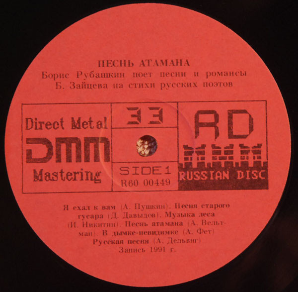 subtitle: "Борис Рубашкин поет песни (и романсы) Б. В. Зайцева на стихи русских поэтов