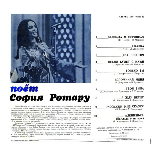 - Ensemble – Мелодия (tracks: B6 to B10), Червона Рута (tracks: A1 to A5)