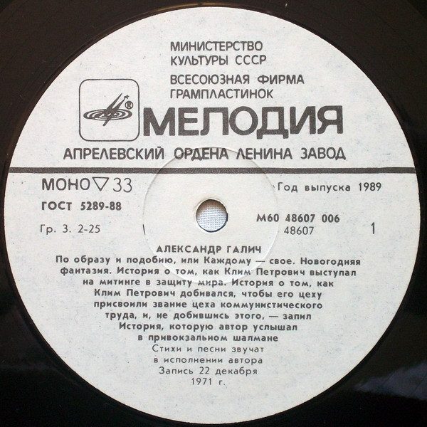 - Written-By, Vocals, Guitar, Read By – Александр Галич