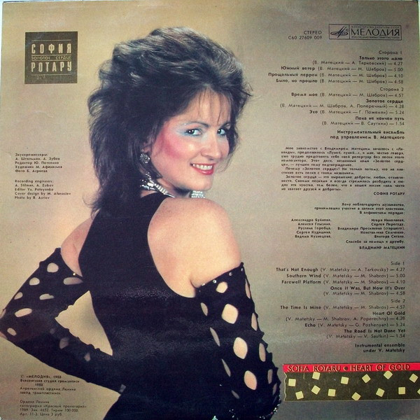 Всесоюзная студия грамзаписи. Запись 1988 г.