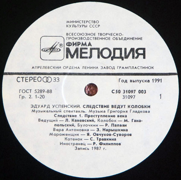 Всесоюзная студия грамзаписи. Запись Всесоюзного радио, 1987 г.