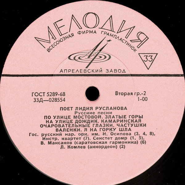 - Orchestra – Государственный Народный Оркестр Им. Н. Осипова* (tracks: A1, A5, B3, B4, B8)