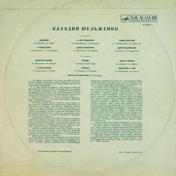 - Directed By – Б. Мандрус* (tracks: A2, A5, B6), Д. Ашкенази* (tracks: A3, A6, B2), Е. Рохлин* (tracks: A1, A4, B1, B3 - B5)