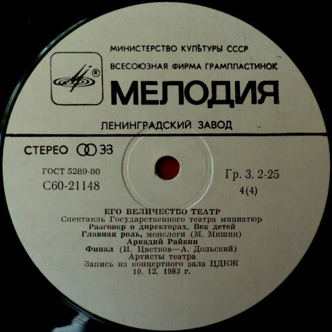 - Words By, Performer, Voice Actor – А. Райкин* (tracks: A2, B2)