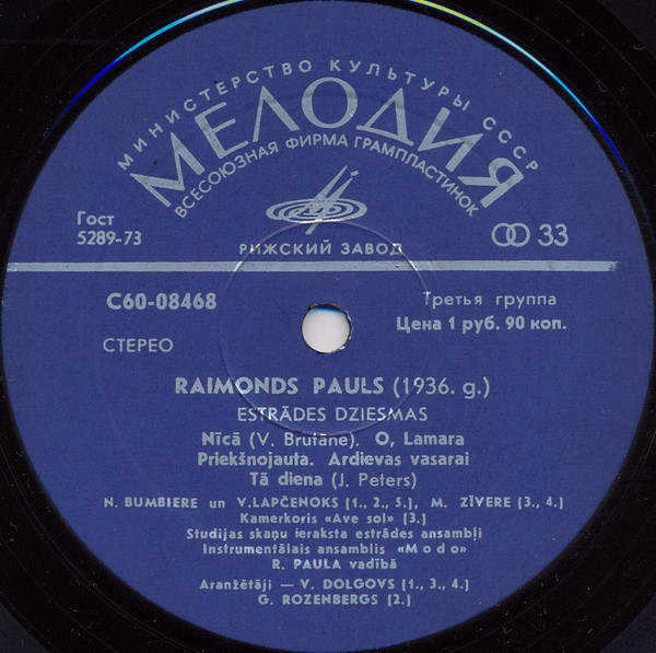 - Arranged By – G. Rozenbergs* (tracks: A1, B2), V. Dolgovs* (tracks: A2 to A5, B1, B3 to B5)